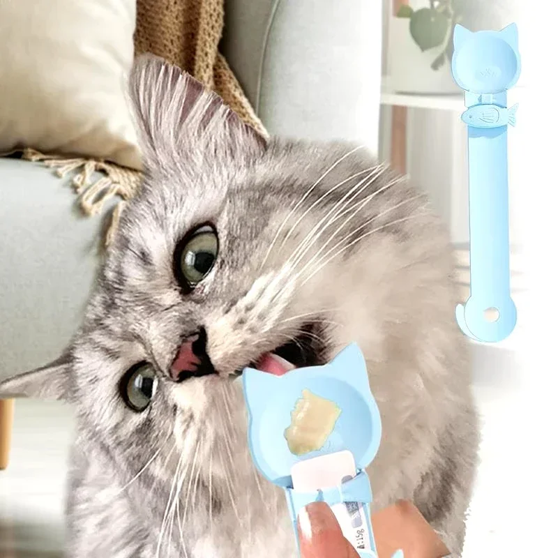 1PC Cat Treat Squeeze Spoon Dispenser Mess-Free Feeding Tool for Paste Snacks Portable Pet Food Scoop Feeding Supplies